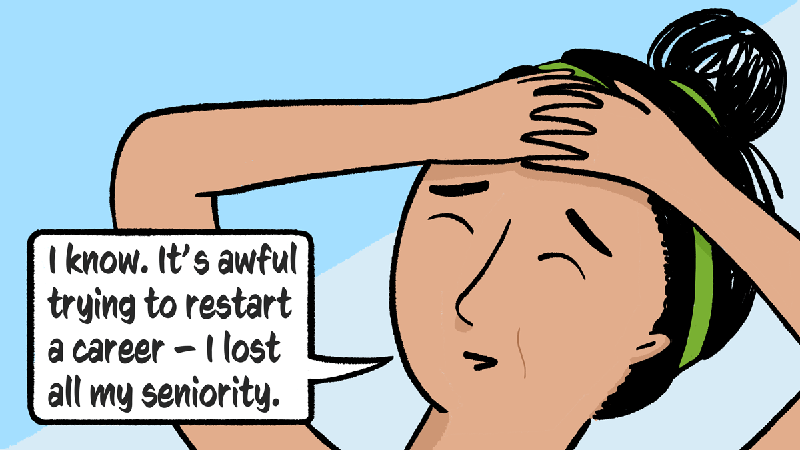 Lori: I know. It’s awful trying to restart a career – I lost all my seniority.